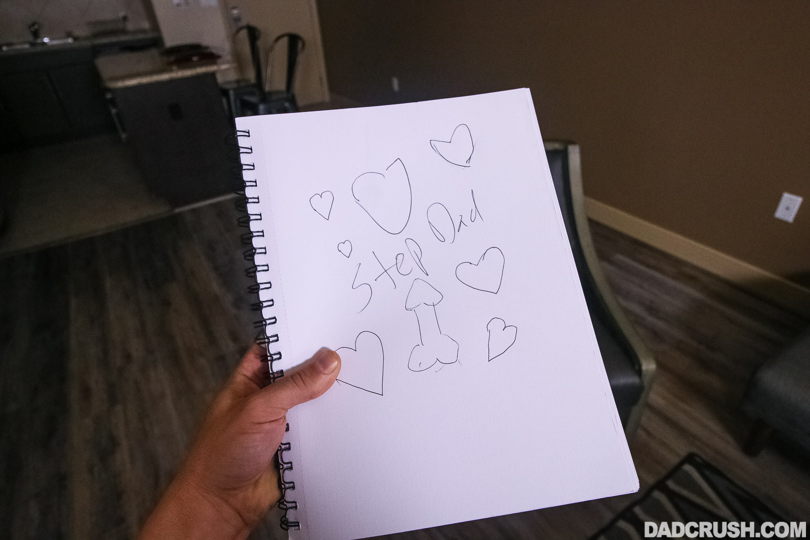 My stepdad likes to help me get inspired artistically. He is super encouraging about it. But ever since I broke up with my boyfriend, I do not have a model to draw. So, my stepdad is letting me draw a very special part of him...